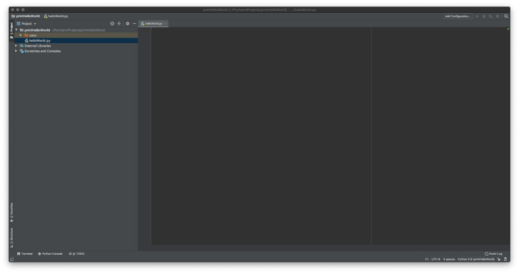 You should now see a your helloWorld.py file opened like this: